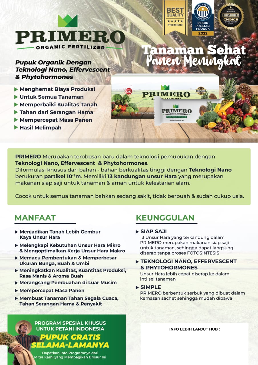 Jangan biarkan lahan Anda rusak karena pupuk kimia. Gunakan PRIMERO sekarang dan buktikan hasilnya.